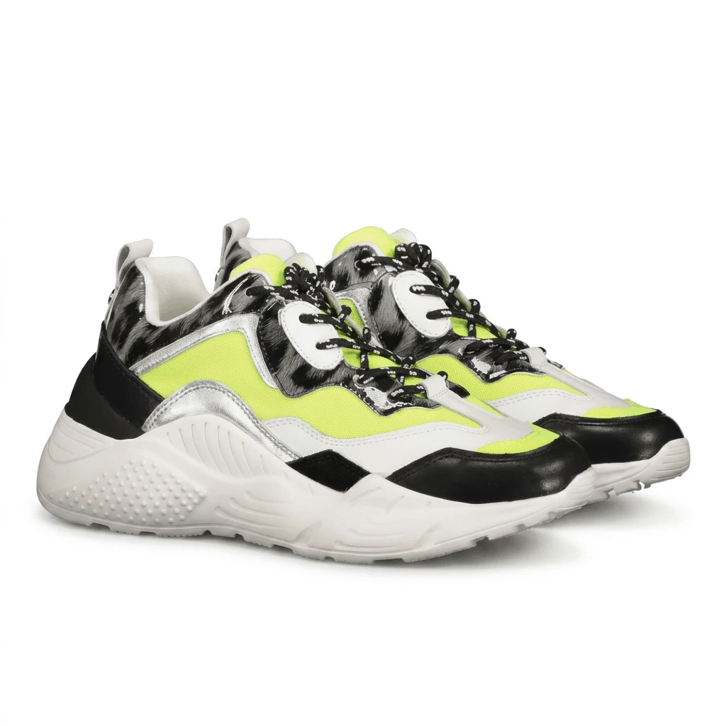 تُعد أحذية "Steve Madden Antonia" الرياضية باللون الأصفر النيون خياراً حيوياً وجريئاً يلفت الأنظار، إذ تمزج ببراعة بين جماليات أزياء الشارع والتصميم الرياضي العملي. وتتميز هذه الأحذية بتدرجاتها اللونية الجريئة باللون الأصفر النيون، وبنعل سفلي "منصي" ذي تصميم نحتي يمنحك زيادة في الطول بمقدار 1.5 بوصة.