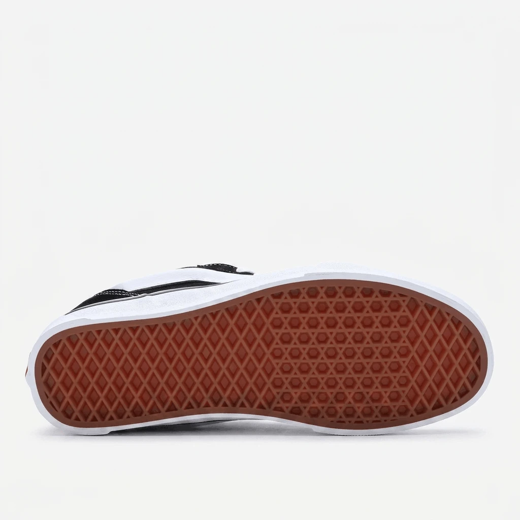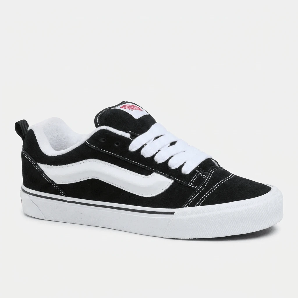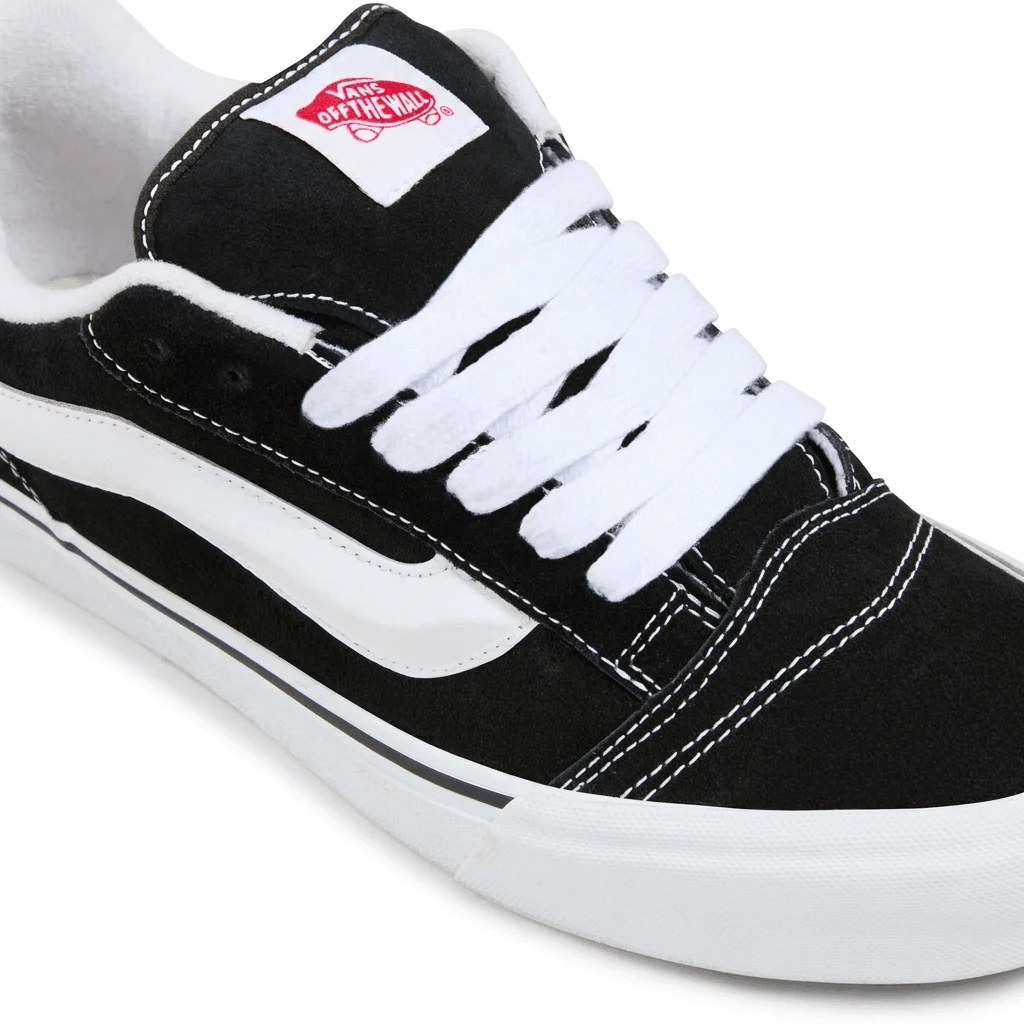 إذ تعيد طراز التسعينيات الجريء إلى شوارع المدينة، تُعد أحذية "Vans Knu Skool" تجسيداً عصرياً ومبتكراً لحذاء التزلج الكلاسيكي منخفض القصة. صُممت هذه الأحذية الرياضية بجزء علوي متين من جلد الشمواه، وتتميز بلسان وياقة حول الكاحل مبطنين بشكلٍ بارز؛ مما يمنحها ذلك المظهر الكلاسيكي "المنتفخ" والأيقوني دون التضحية بالراحة التامة طوال اليوم. كما يوفر النعل الأوسط الناعم تجربة مشي مريحة ومبطنة، بينما يضمن النعل الخارجي المطاطي المميز بنقشة "الوافل" تلك الثبات الموثوق الذي اشتهرت به علامة "Vans". وتكتمل أناقة حذاء "Knu Skool" بعروة سحب عملية عند الكعب وشريط جانبي كلاسيكي، مما يجعله الخيار الأمثل لكل من ينشد مزيجاً فريداً يجمع بين ثقافة التزلج الكلاسيكية والمتانة العملية الملائمة للاستخدام اليومي الشاق.