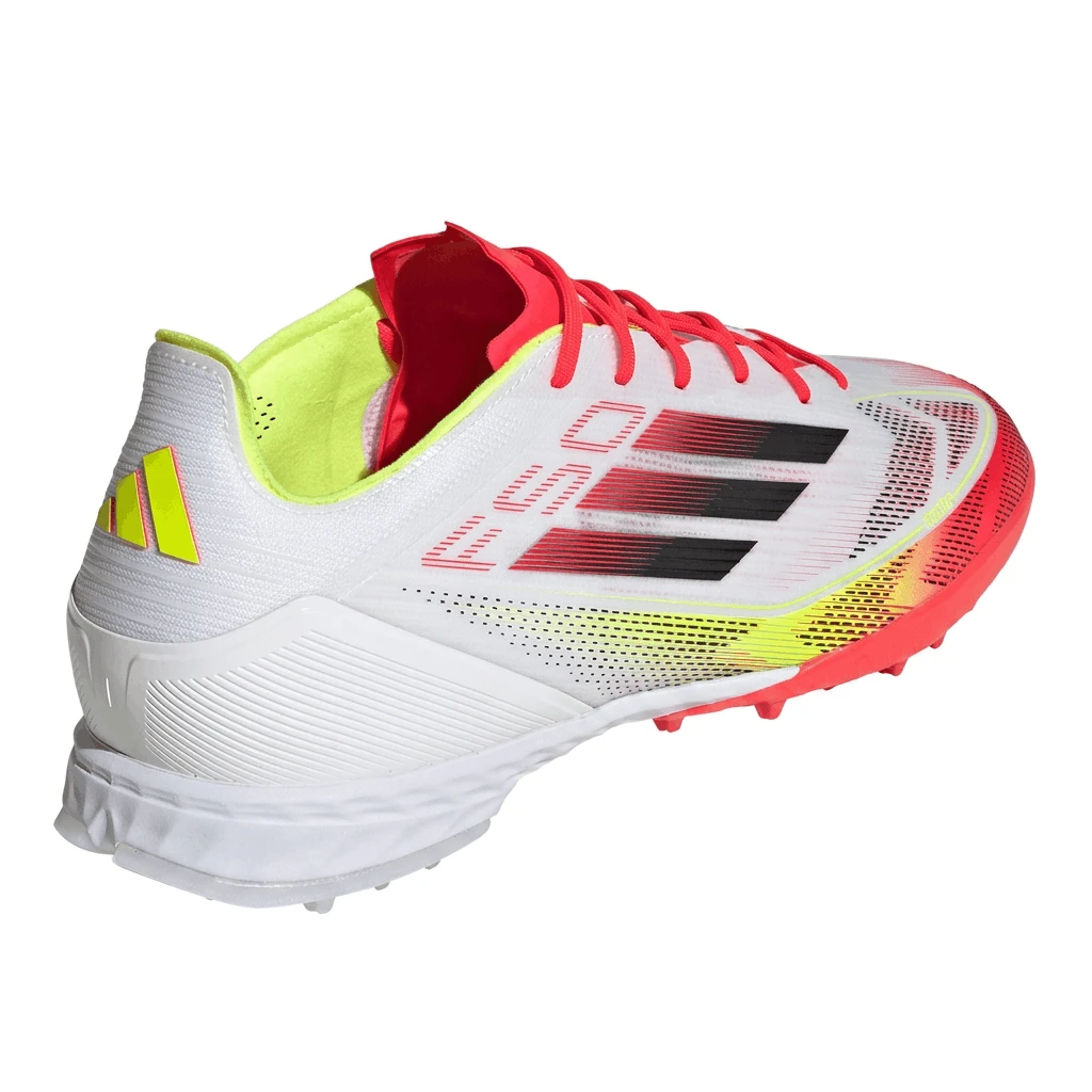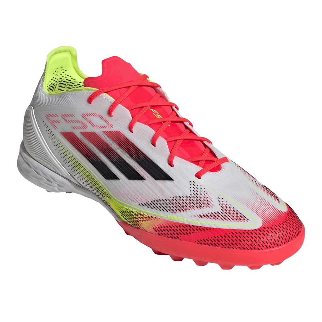 صُمم حذاء أديداس F50 Pro Turf بدقة متناهية للاعبين الذين يُعطون الأولوية للسرعة وخفة الحركة على الملاعب الصناعية. يتميز هذا الحذاء بجزء علوي خفيف الوزن مصنوع من مادة Fibertouch معززة بتقنية Sprintweb ثلاثية الأبعاد، مما يوفر تحكمًا استثنائيًا بالكرة أثناء المراوغة بسرعات عالية. يضمن لسان الحذاء المدمج بتقنية Compression Fit Tunnel ثباتًا محكمًا للقدم، بينما يوفر النعل الأوسط بتقنية Lightstrike توسيدًا سريع الاستجابة ومنخفض الارتفاع للحفاظ على أدائك القوي طوال المباراة. صُمم الحذاء بنعل خارجي مطاطي متين لتوفير أقصى قدر من الثبات، ويحتوي على ما لا يقل عن 20% من المواد المعاد تدويرها، ليُقدم F50 Pro حلاً مستدامًا وعالي الأداء للاعبين المحترفين على الملاعب الصناعية.